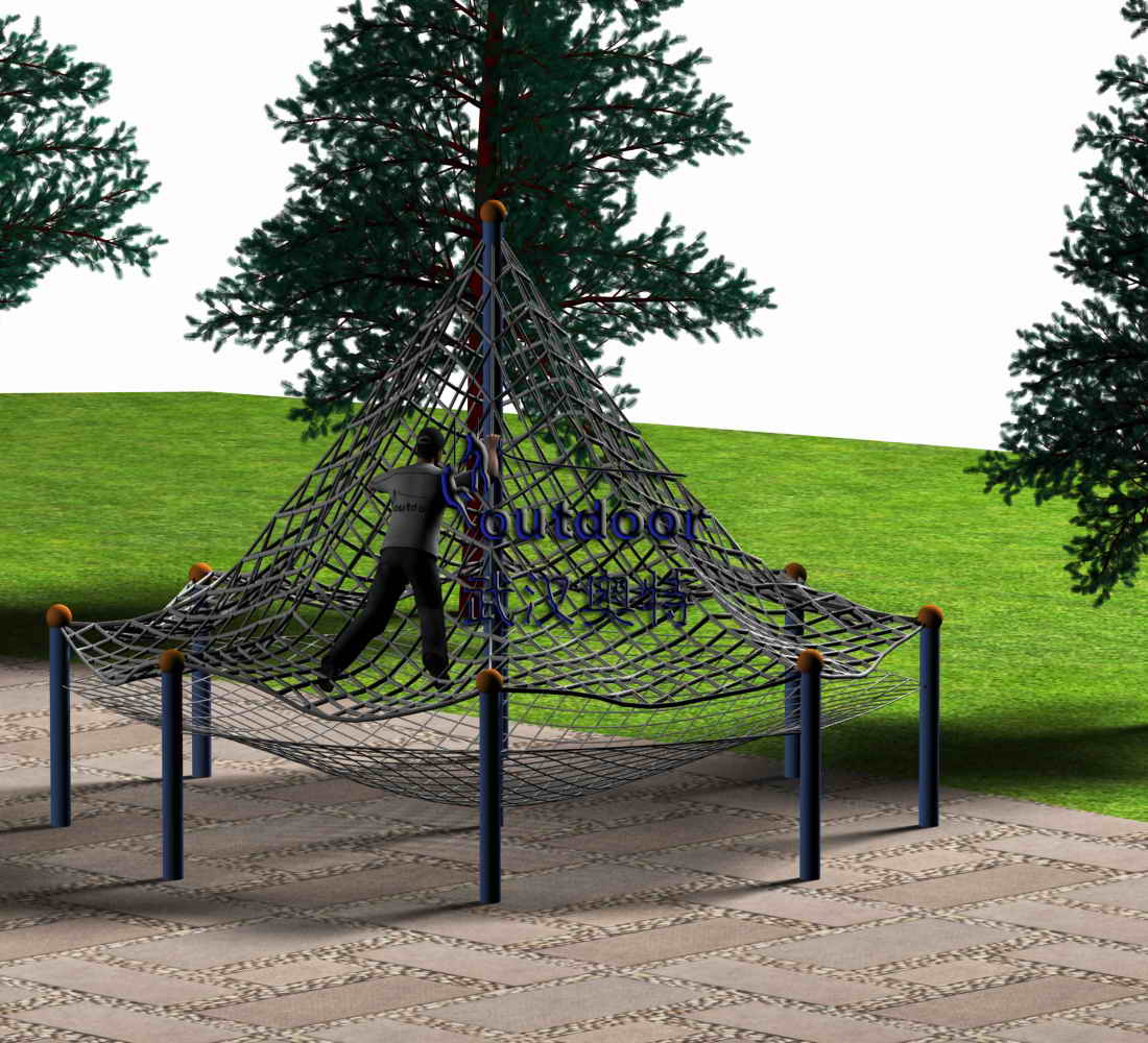 探險器材產品介紹:一張大網,中間凸起,多人或單人攀爬體驗。