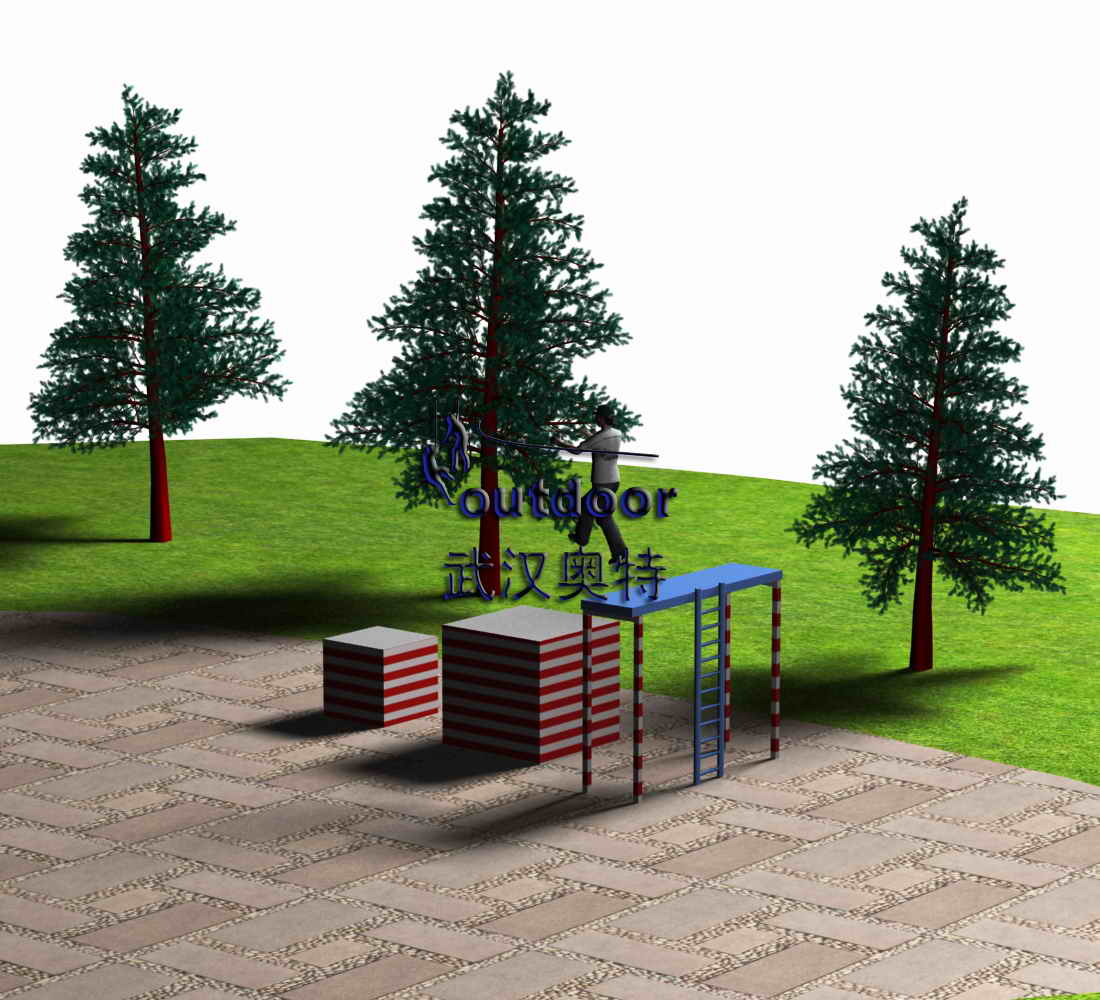 探險(xiǎn)器材產(chǎn)品介紹:高低兩座平臺(tái),參與者需一一穿越過去。